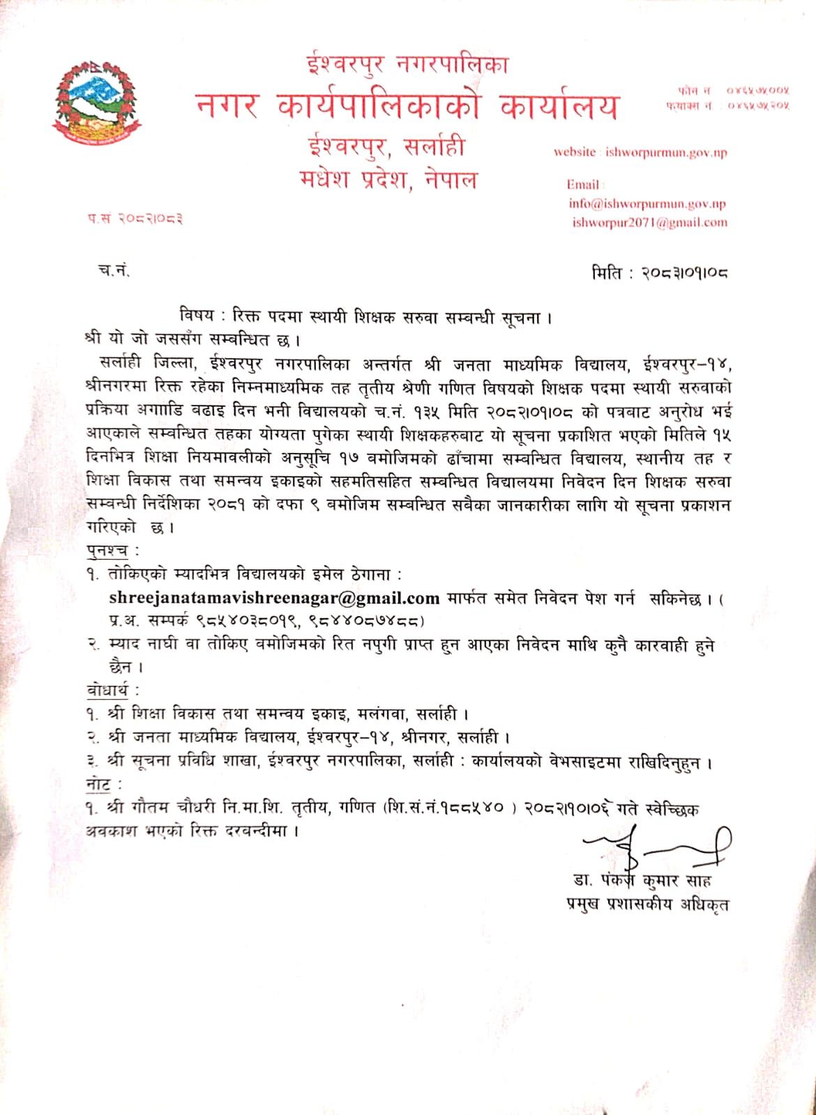 नगर प्रहरी आवश्यकत सम्बन्धि सुचना