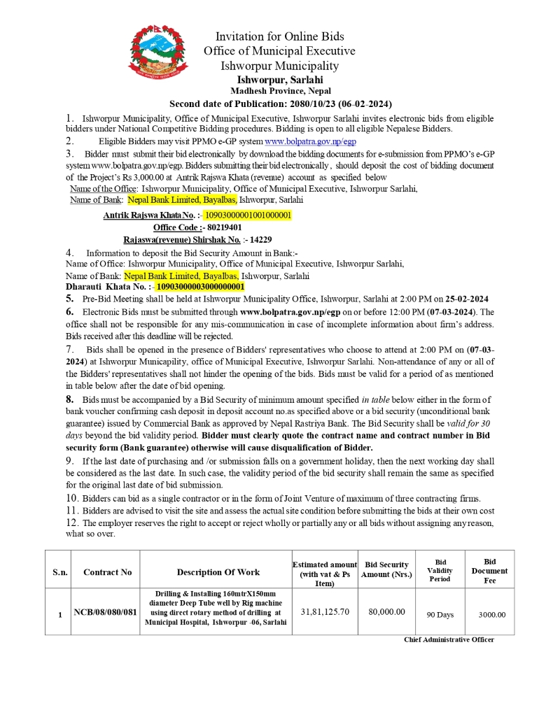 अनलाइन बोलपत्र आहवान गरिएको सूचना