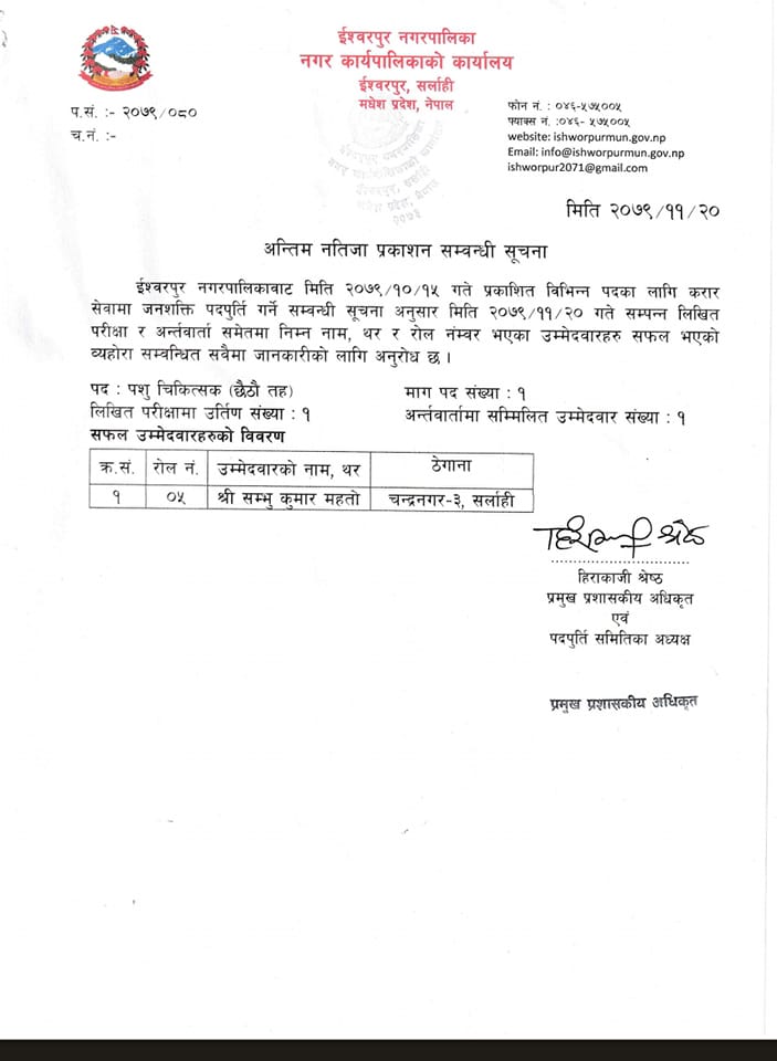 अन्तिम नतिजा प्रकाशन सम्बन्धि सुचना