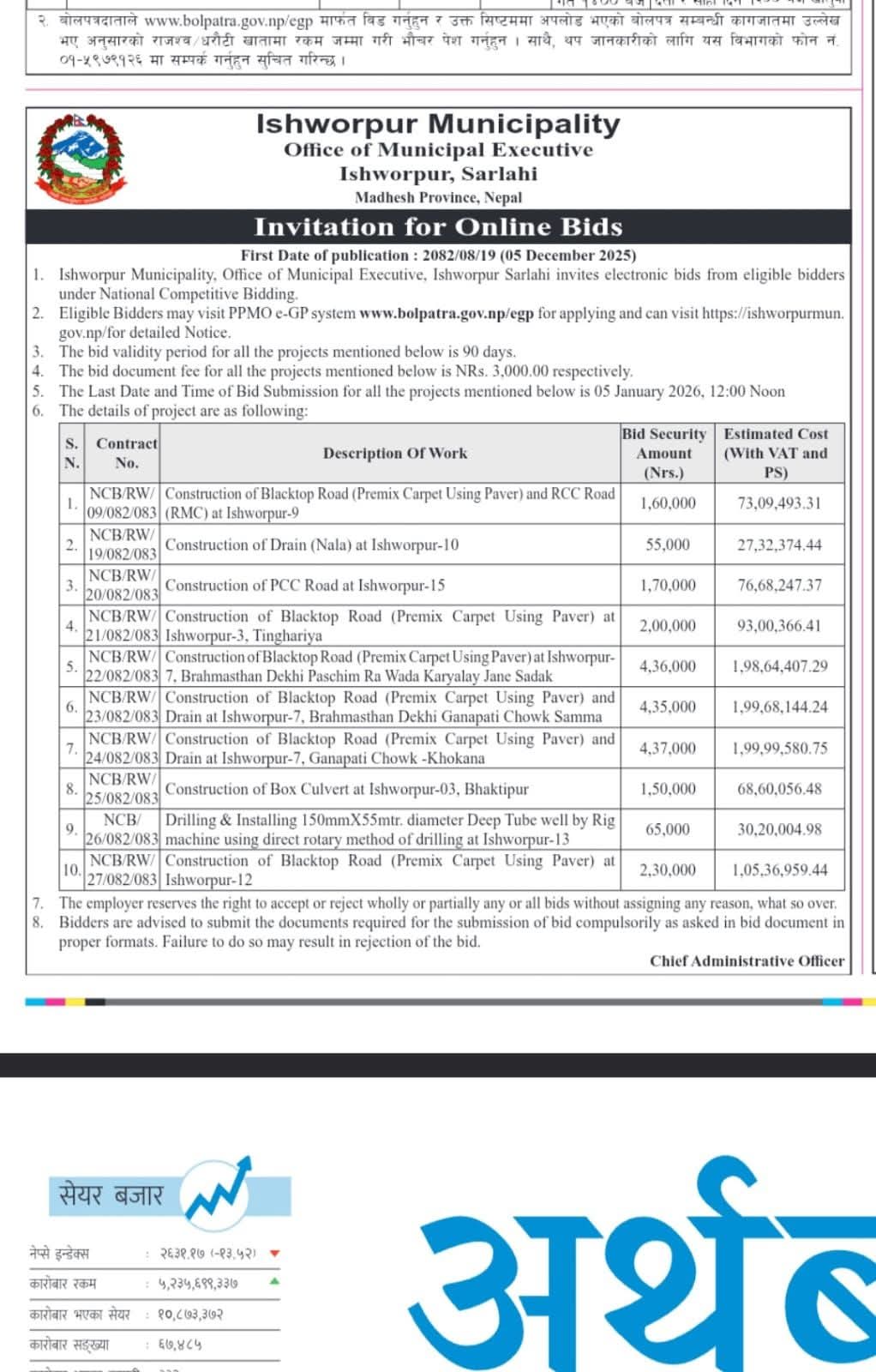 अनलाइन बोलपत्र आहवान गरिएको सूचना