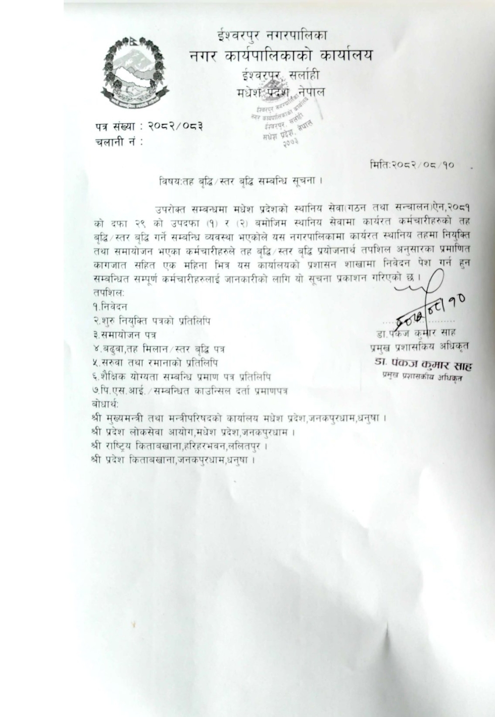 ईश्वरपुर नगरपालिकाको नागरिक वडा पत्र