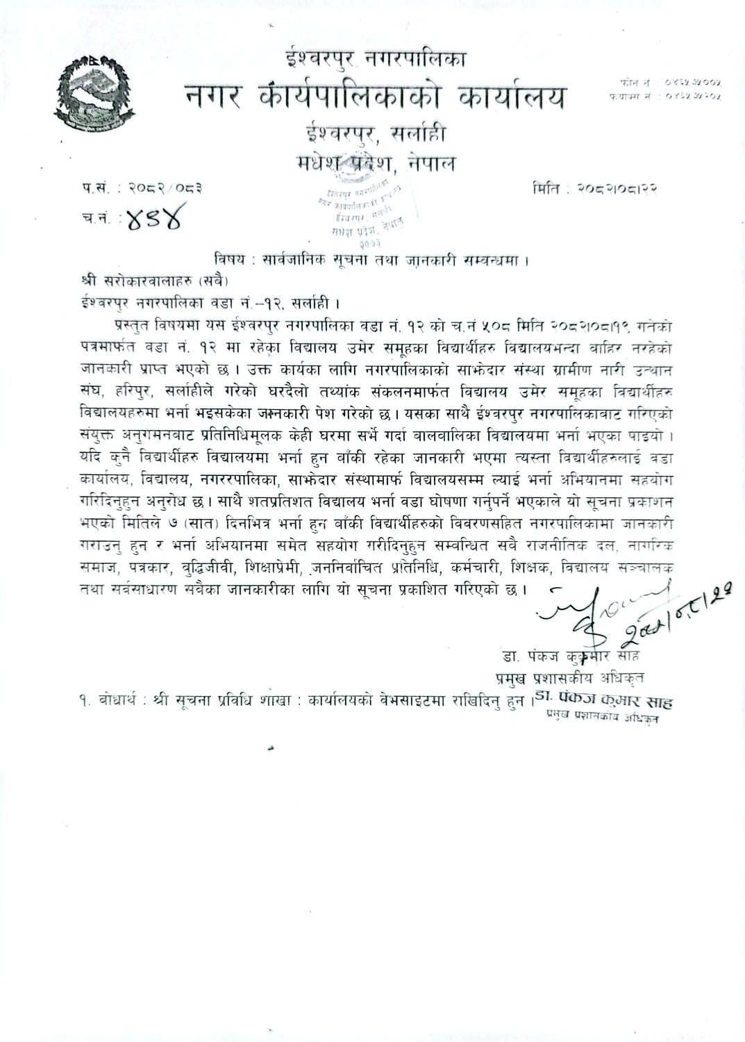 सार्वजनिक सुचना तथा जानकारी सम्बन्धमा
